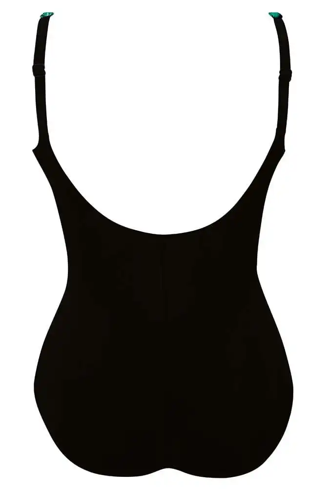 Gekonnt versetzt uns Badeanzug Luella der Qualitätsmarke Anita in Urlaubslaune. Der bügellose Badeanzug Luella aus der Serie Paradise Island sorgt mit seinem wunderschönen Blätterprint für eine edle Optik. Der diagonale unifarbene Verlauf in der vorderen Mitte bewirkt eine optische Verschlankung Ihrer Figur. Das hochwertige elastische Material schmiegt sich vorteilhaft an Ihre Haut und bietet durch seinen hohen Elasthan-Anteil einen angenehmen Slimming-Effekt mit mittlerem Support. Die weichen Träger sind verstellbar und optimieren die Passform. Der Beinausschnitt ist moderat.