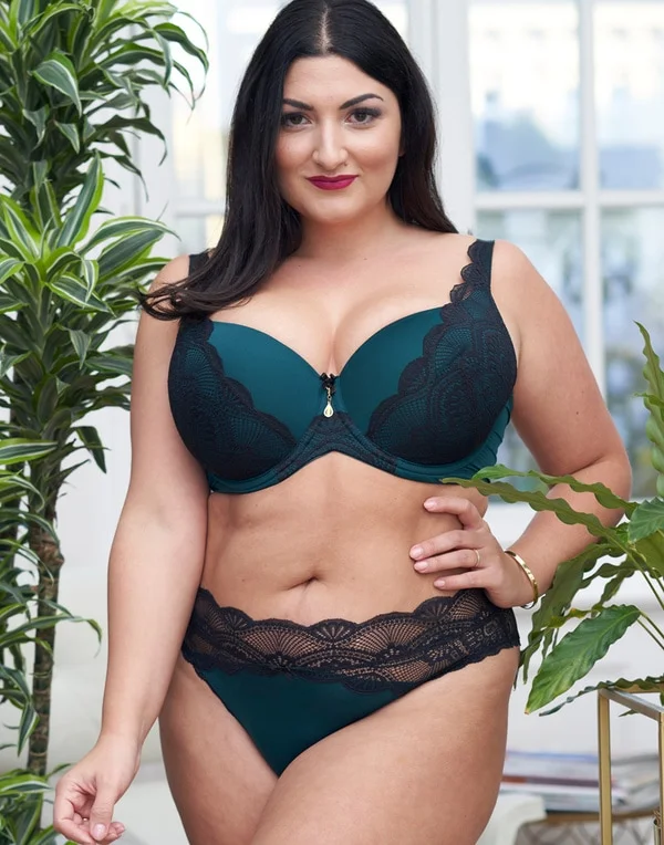 Kombiniere High-Panty „Pure Divine“ peacock mit BH „Pure Divine“ peacock.