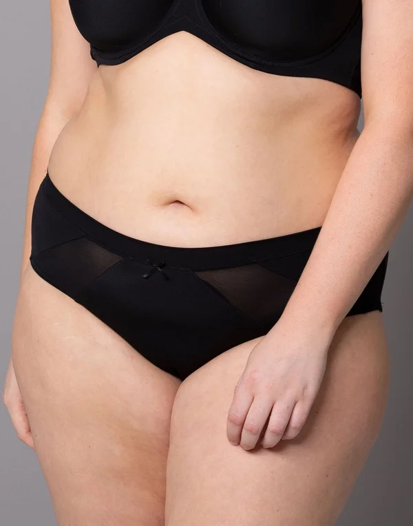 Unsere Panty „Roxanne“ besticht durch ihren sportlichen, aber raffinierten Look mit dekorativen Mesh-Einsätzen und farblich abgestimmter Schleife im Vorderteil. Das angesetzte Bündchen aus Mesh schmiegt sich an jede Kurve an.