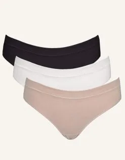 Das 3er-Set der weichen und bequemen „Cotton Basic“-Strings aus Baumwolle ist die perfekte Wahl für den Alltag. Die breiten, flach verarbeiteten Bündchen schmiegen sich sanft an Deine Kurven, ohne unangenehm einzuschneiden. Die atmungsaktive Baumwolle sorgt für ein angenehmes Gefühl auf der Haut und nimmt Körperfeuchtigkeit besonders gut auf. Durch die breiteren Seiten wird zusätzlicher Tragekomfort gewährleistet. Das Set besteht aus drei Strings in den Farben: Schwarz, Weiß und Cappuccino.